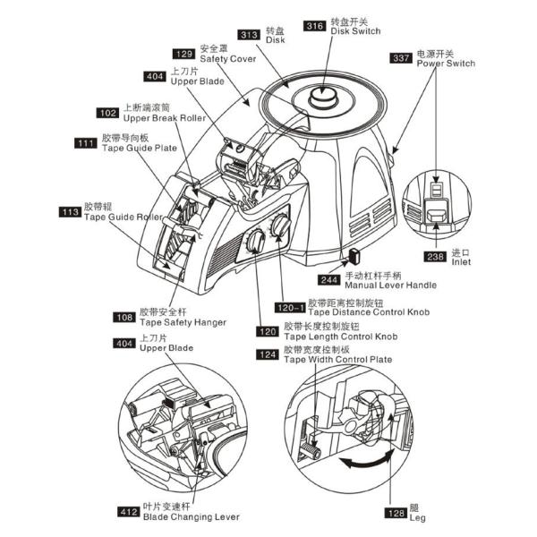 *Easy to operate, Change the length of tape and spacing by side knob.